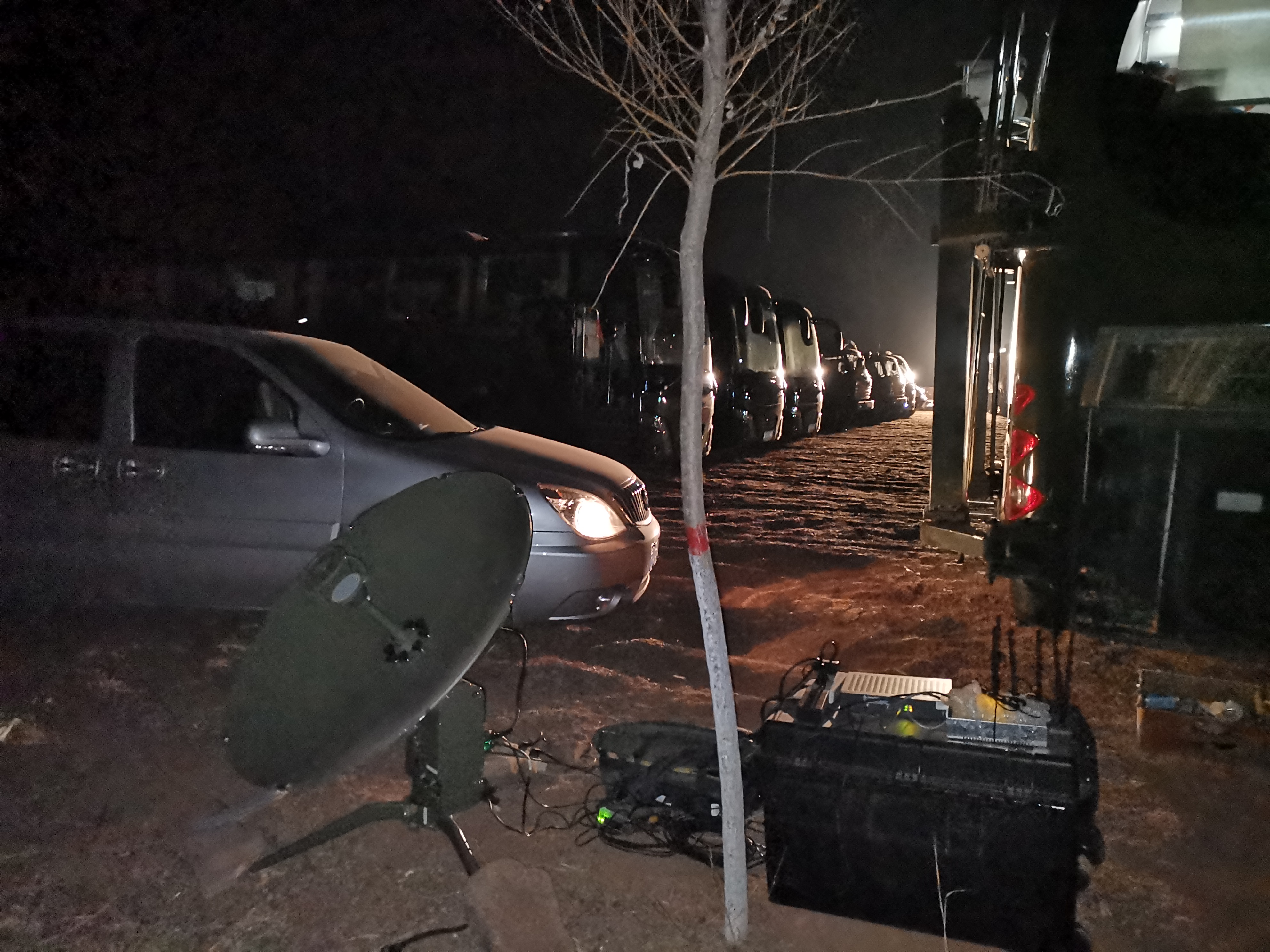 直升機與多媒體衛星通信車待命中