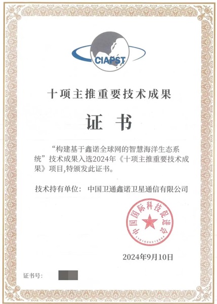 鑫諾公司入選中國國際科技促進會2024年《十項主推重要技術成果》項目